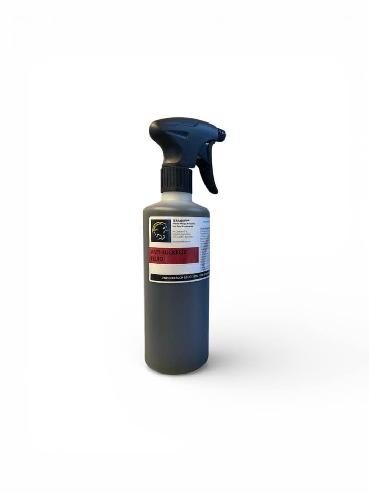 Anti-Juckreiz-Fluid zur Verschönerung, Pflege und Wiederherstellung des Felles und Mähne/Schweif von Ekzemerpferden und zur Schadensregulierung bei Kriebelmücken-Angriffen und anderen Lästlingen. Dieses Produkt dient zur Pflege bei Pferden mit Sommerekzem und ist auch präventiv einsetzbar.