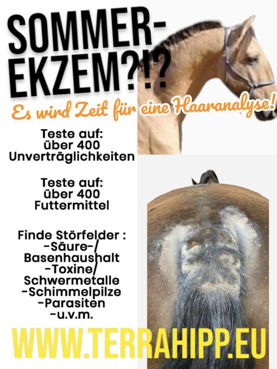 Nachkontrolle: Nach der Haaranalyse sollte eine Erfolgskontrolle durchgeführt werden. Hierzu messen wir ca. 8 -12 Wochen nach der ersten Haaranalyse nach. Evtl. werden hierbei nochmal die Futtermittel geändert oder ergänzt. Die Nachkontrolle ist nur buchbar, wenn das Pferd schon vorab eine Haaranalyse bei uns durchlaufen hat. Wir empfehlen jedes Pferd regelmäßig, mindestens 3-4 x im Jahr zu kontrollieren und zu optimieren.