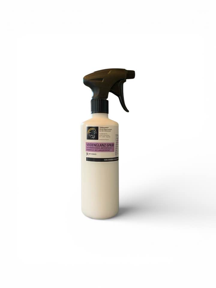 Unser Seidenglanz-Spray mit Kokos und Lavendel-Extrakt ist eine bewährte Kombination aus natürlichen Ölen und Proteinen und es unterstützt die Widerstandsfähigkeit und Elastizität des Langhaares. Die besondere Kombination aus wertvollen Bestandteilen, gewonnen aus reichhaltigen pflanzlichen Ölen wie Kokosöl und Lavendelextrakt, macht das Lang-Haar weich und geschmeidig. Sie verleiht Glanz, langanhaltende Kämmbarkeit, Verknotungen lassen sich leichter entwirren und bildet gleichzeitig einen Schutzmantel gegen Verschmutzungen. Ideal auch für den Langhaarschutz in den Wintermonaten – auch in Kombination mit dem Einflechten der Mähne. Dadurch gibt es weniger Haarbruch – bei korrektem Einflechten der Haare.